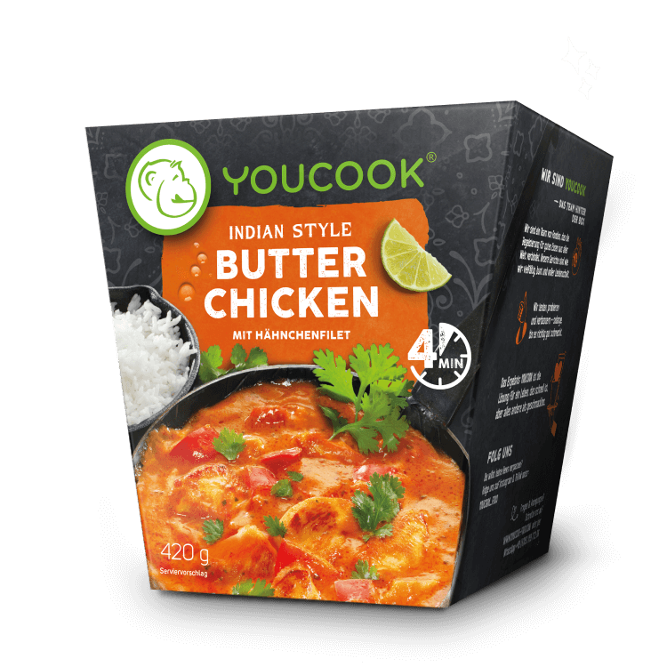 Die indische Küche ist bekannt für zartes Fleisch und eine atemberaubende Gewürzauswahl. Mit unserem Indian Style Butter Chicken möchten wir genau diese Aspekte aufgreifen: Genieße zartes Hähnchenbrustfilet in einer cremigen und aromatisch gewürzten Tomatensauce. Dazu servieren wir schmackhaften Basmatireis & Jasminreis.