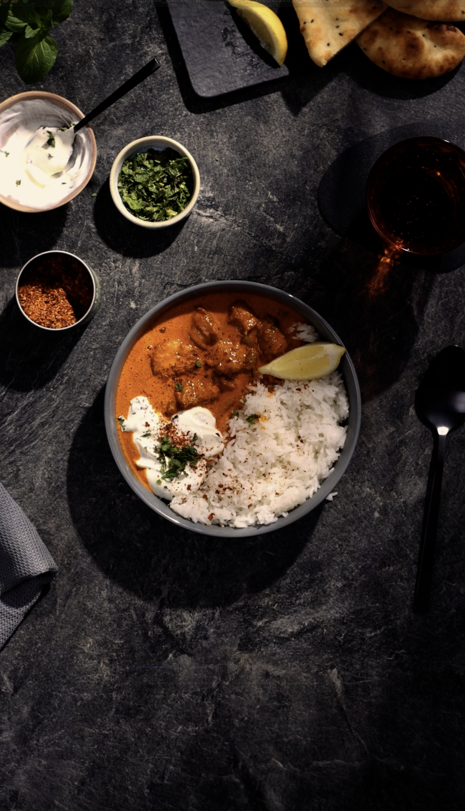 Unser Indian Style Chicken Tandoori besteht aus köstlichen Hähnchenbrustfilet in einer würzigen Joghurtsoße. Als Beilage trifft locker leichter Basmatireis auf aromatischen Jasminreis.
